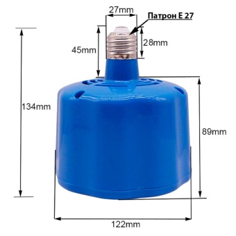 | Характеристики | Материал: высокотемпературный пластик, металл Мощность переменная: 100 Вт - 200 Вт - 300 Вт Напряжение: 220 В Патрон: тип E27 Температура выходящего нагретого воздуха при мощности 300 Вт – около 60°С (не допускает обжигания) На расстоянии 30 см от выходного отверстия воздух нагревается: - при мощности 100 Вт – на 6°C - при мощности 200 Вт – на 11°C - при мощности 300 Вт – на 15°C Объем в паковке: 15*15*15 см. Вес в паковке: 0.3 кг.. |