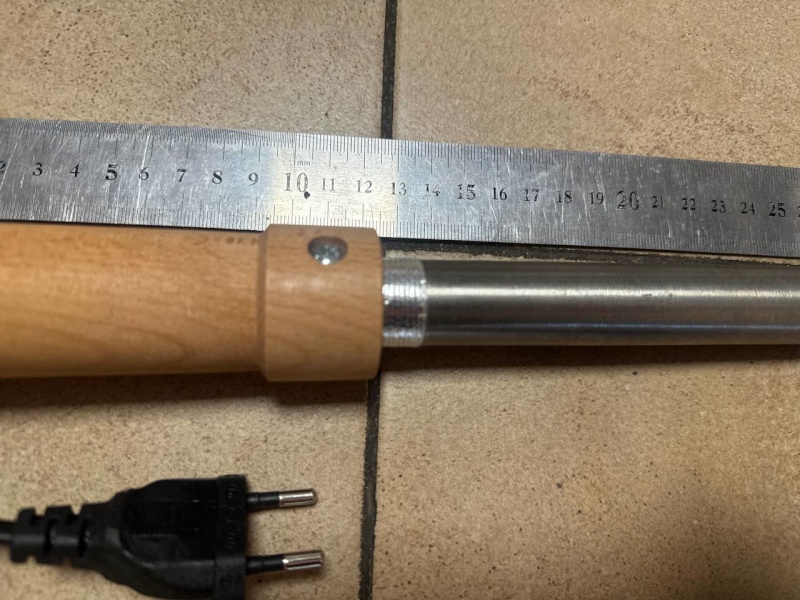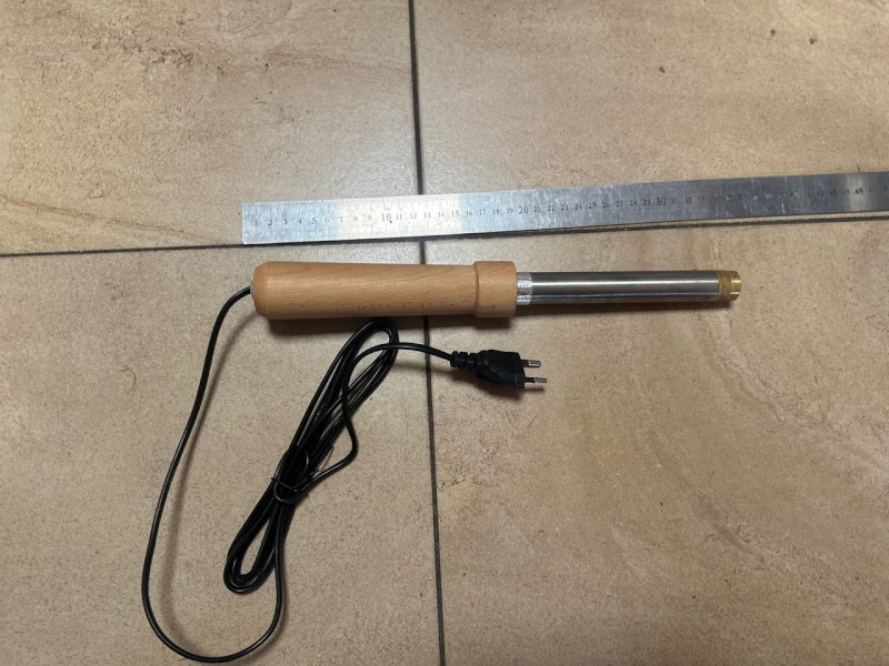 Термокаутер обезроживатель. Прямое подключение 220 В. Длина 33 см. Стержень 16 см. Диаметр сопла 15 мм. Удобная деревянная ручка. Мощность 210 Вт. Т max – 620 С. Время нагревания – 11 мин. Длина кабеля –190 см. Высокая концентрация температуры и большой запас мощности сопла