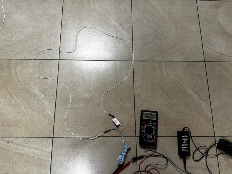 Гибкий одножильный низковольтный греющий кабель 12/24 Вольт, 2.5/9 Вт. (2 метр.+2.5 питающего)