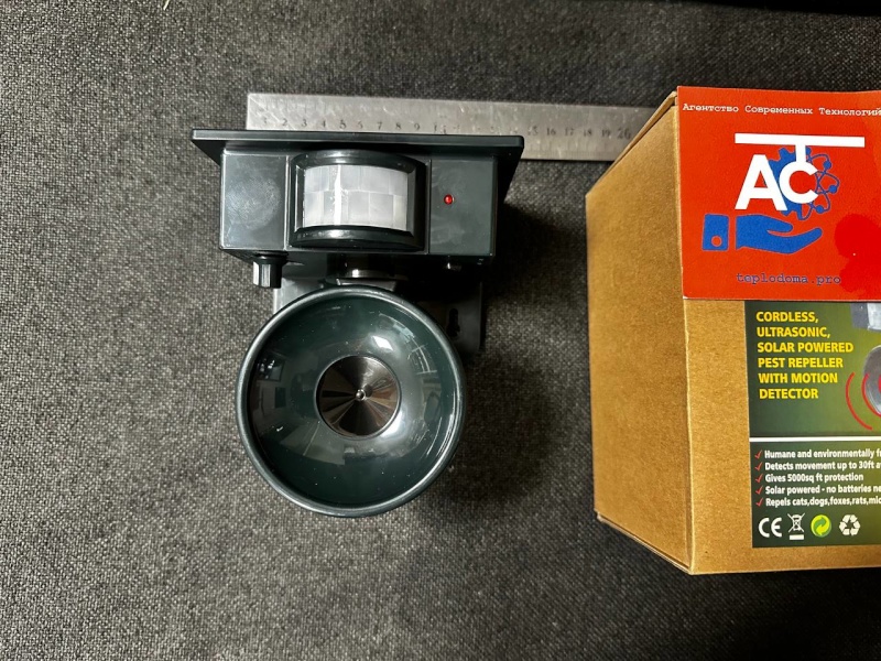 Teplo-doma.net » Каталог товаров компании » Отпугиватели грызунов, животных и насекомых » Отпугиватели птиц » Водонепроницаемый отпугиватель животных на солнечных батареях с датчиком движения
