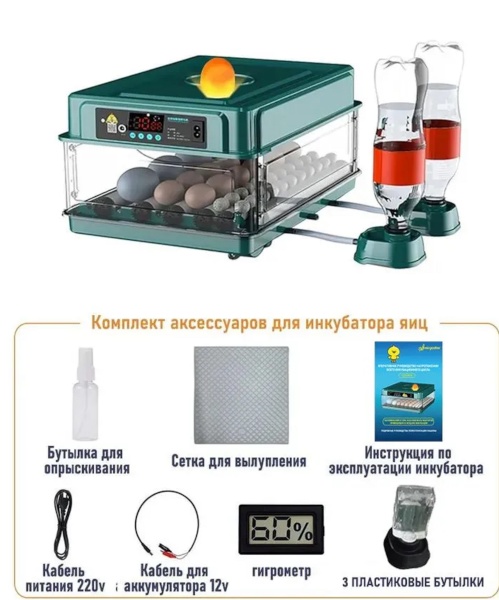 Инкубатор микроконтроллерный. Умный инкубатор 30 яиц, цифровой, 220/12 В, автоповорот, регулировка влажности, подача воды